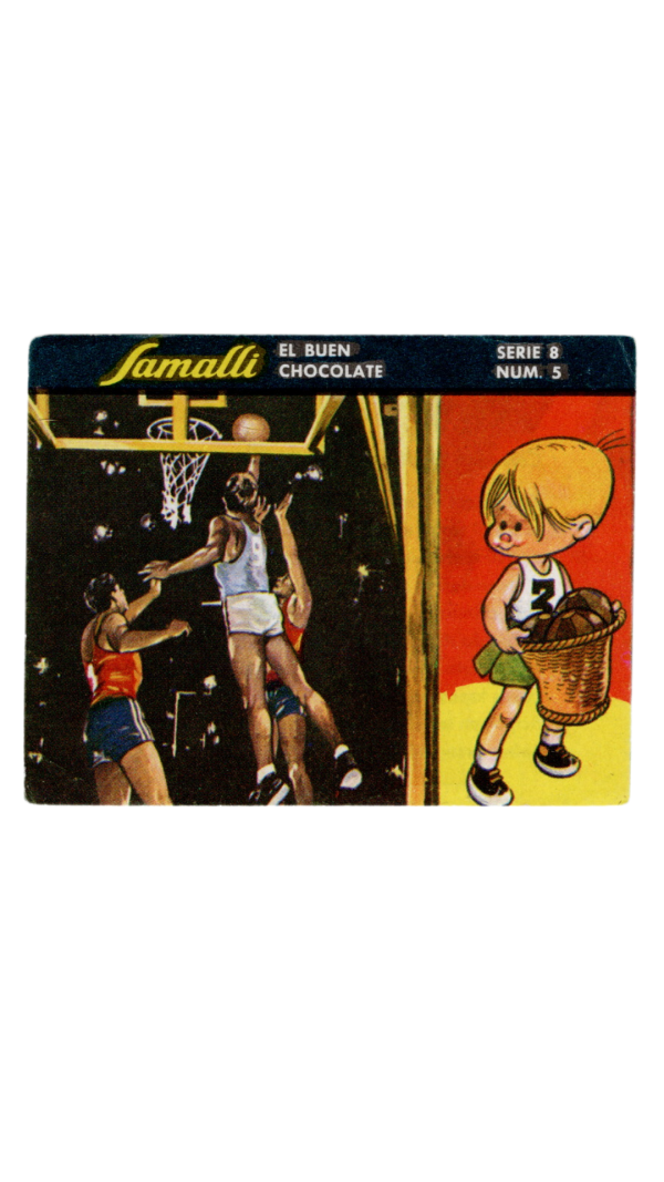 Samalli Chocolates of Spain produced these cards and corresponding album as an education and learning series. Album 1 was released in 1963 and this basketball card is from Series 8 of the 2nd album, which was released in 1965. The 2nd album set consisted of 100 cards, this is the only basketball card in the set.