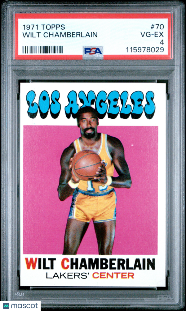 You are purchasing a 1971 Topps Wilt Chamberlain #70 Vintage Low Pop PSA 4. You will receive the exact item in the photographs.