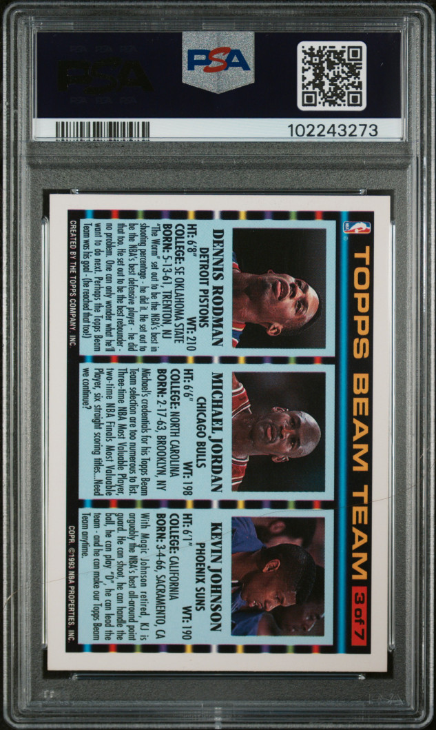 1992 Topps Beam Team Kevin Johnson Michael Jordan Dennis Rodman PSA 9