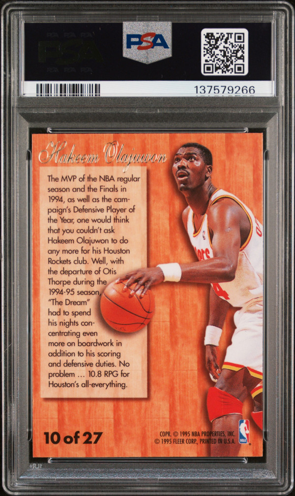 You are purchasing a 1995 Fleer Flair Hardwood Leaders Hakeem Olajuwon #10 PSA 8. You will receive the exact item in the photographs. Thank you for looking.