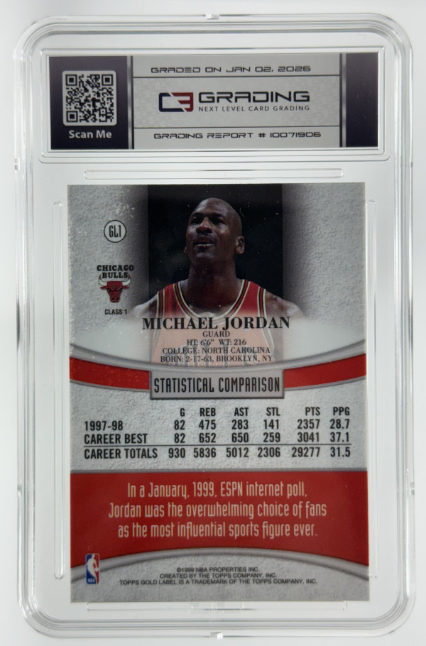 1998-99 Topps Michael Jordan Gold Label Insert #GL1 Graded - C3 Grading - 10 GEM