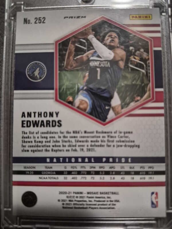 20-21 Mosaic-National Pride Anthony Edwards RedWave Rookie