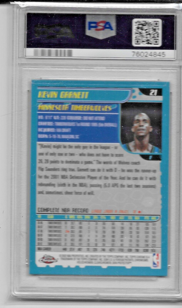 You are purchasing a 2001-02 Topps Chrome Kevin Garnett #21 Base Set PSA 10. You will receive the exact card in the photographs. Thank you for looking.