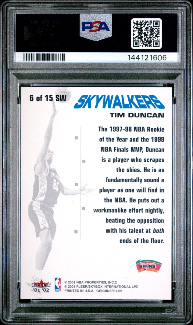 You are purchasing a 2001 Fleer Genuine Skywalkers Tim Duncan PSA 9. You will receive the exact item in the photographs. Thank you for looking.