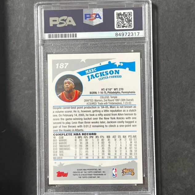This listing features a 2005-06 Topps #187 Marc Jackson, professionally PSA authenticated.