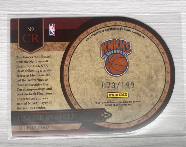 2010 Crown Royal Majestic Signatures Cazzie Russell Auto Knicks 73/199