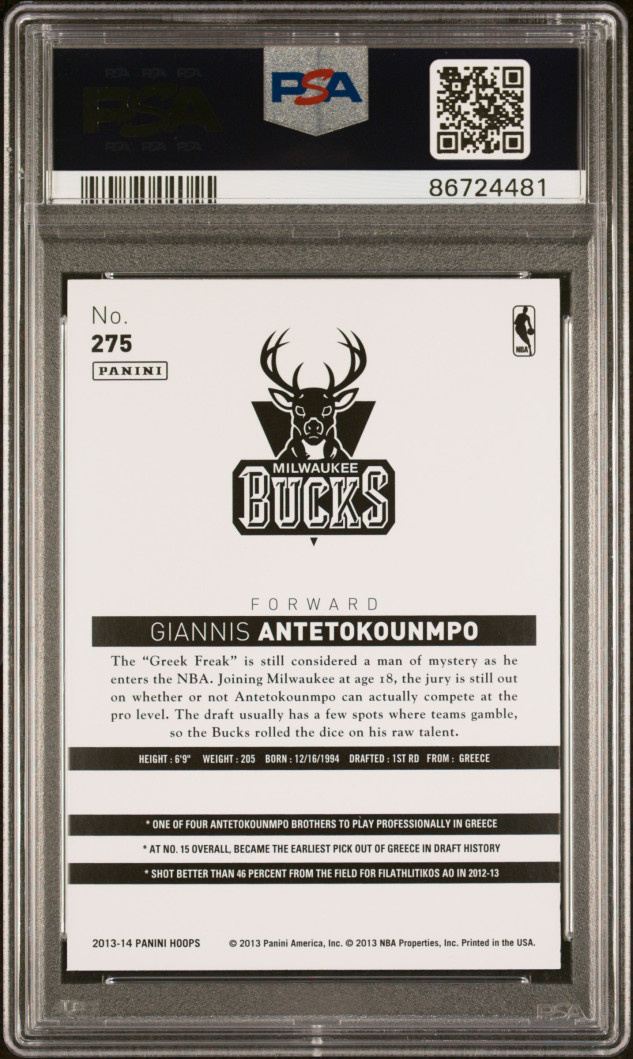 2013 Panini Hoops Giannis Antetokounmpo RC PSA 10