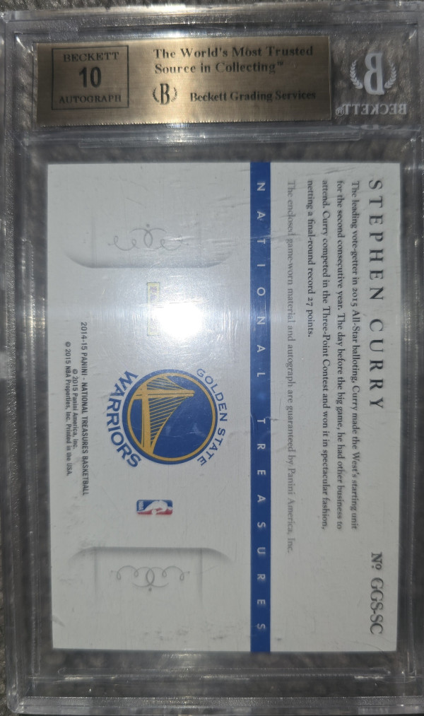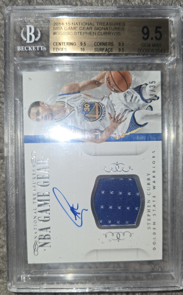 2014-15 National Treasures Nba Game Gear Signatures #ggssc Steph Curry /35 Beckett 9.5 Near Mint