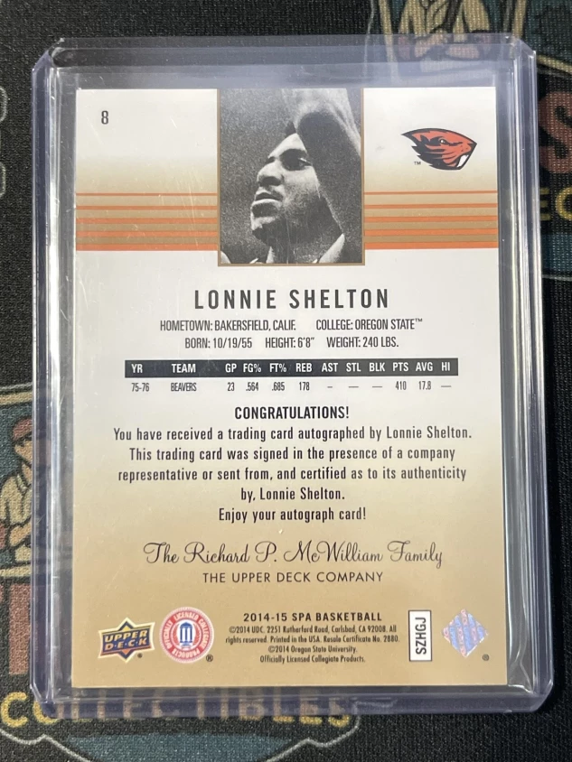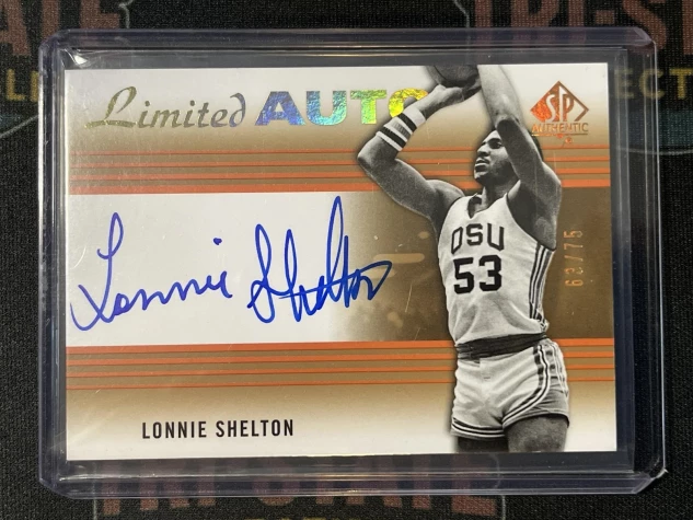 This is a nice example of a 2014-15 SP Authentic #8 Lonnie Shelton Limited Auto
