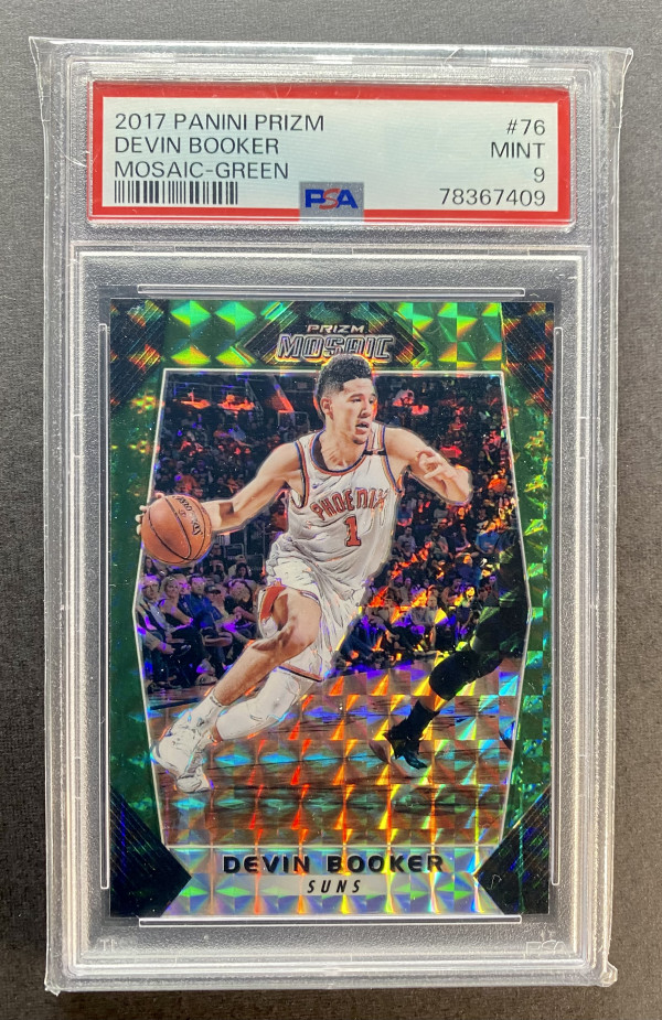 2017 PANINI PRIZM DEVIN BOOKER MOSAIC-GREEN #76 PSA 9