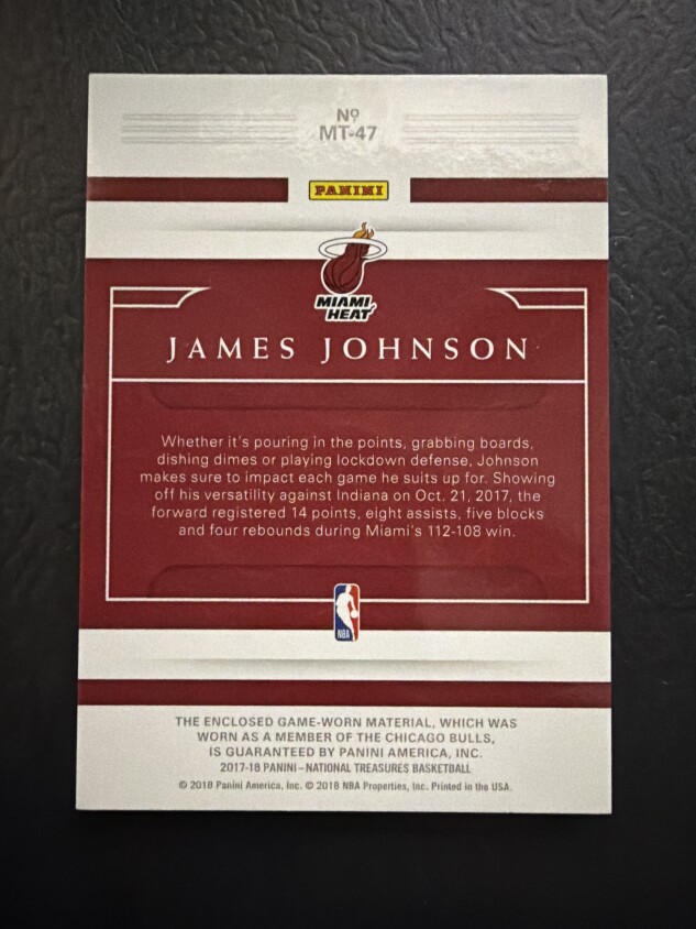 Produced by Panini, this card is part of the prestigious National Treasures set and is loaded with memorabilia features. Whether you’re a Miami Heat fan or a dedicated James Johnson supporter, this card is a must-have addition to your collection. Secure this unique piece before it’s gone!