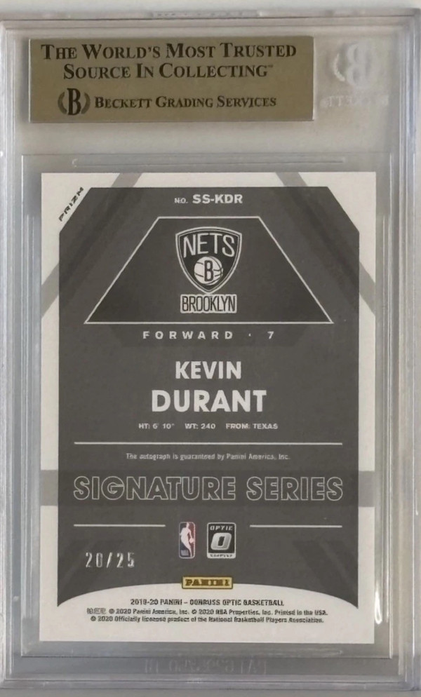 2019-20 Panini Optic 🔵🔥Blue Kevin Durant AUTO #20/25 Signature Series BGS 9.5