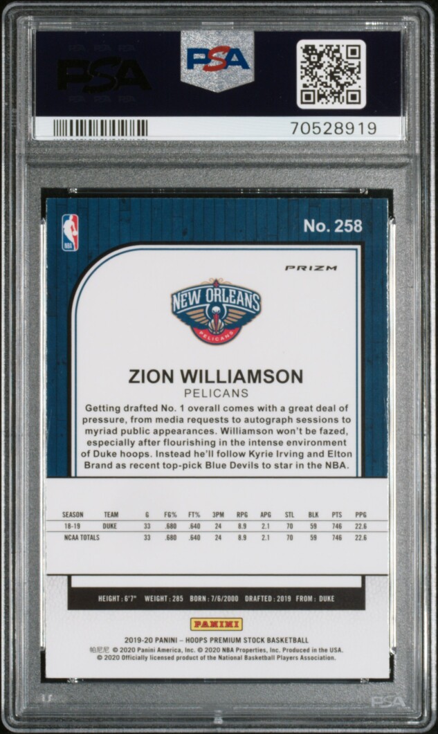 2019 Panini Hoops Premium Stock Zion Williamson Pulsar