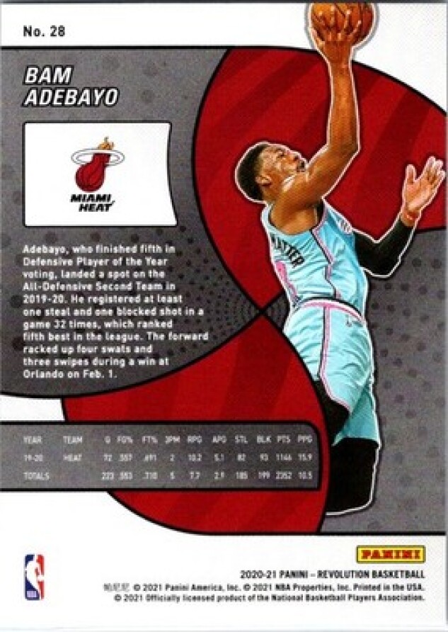 This is a nice example of a 2020-21 Panini Revolution #28 Bam Adebayo