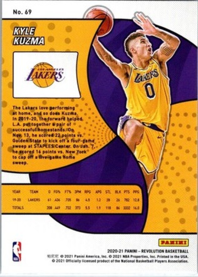 This is a nice example of a 2020-21 Panini Revolution #69 Kyle Kuzma