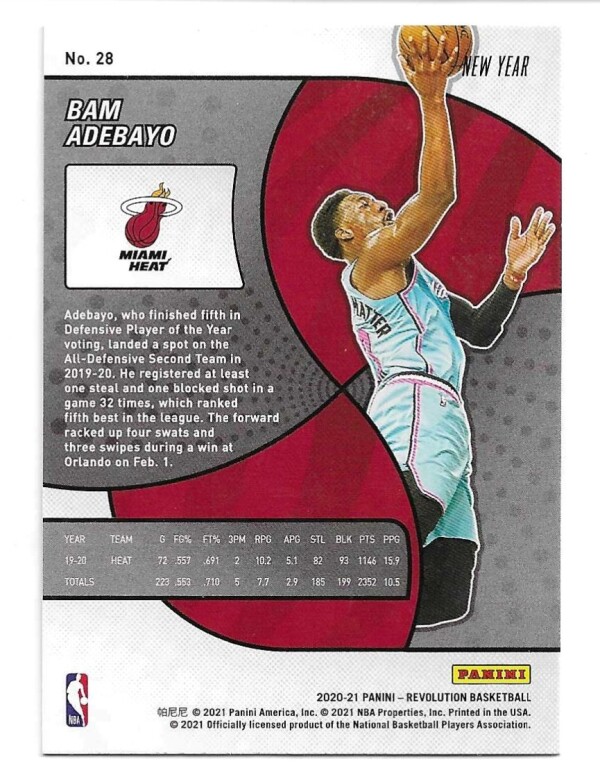 2020-21 PANINI REVOLUTION CHINESE NEW YEAR #28 BAM ADEBAYO