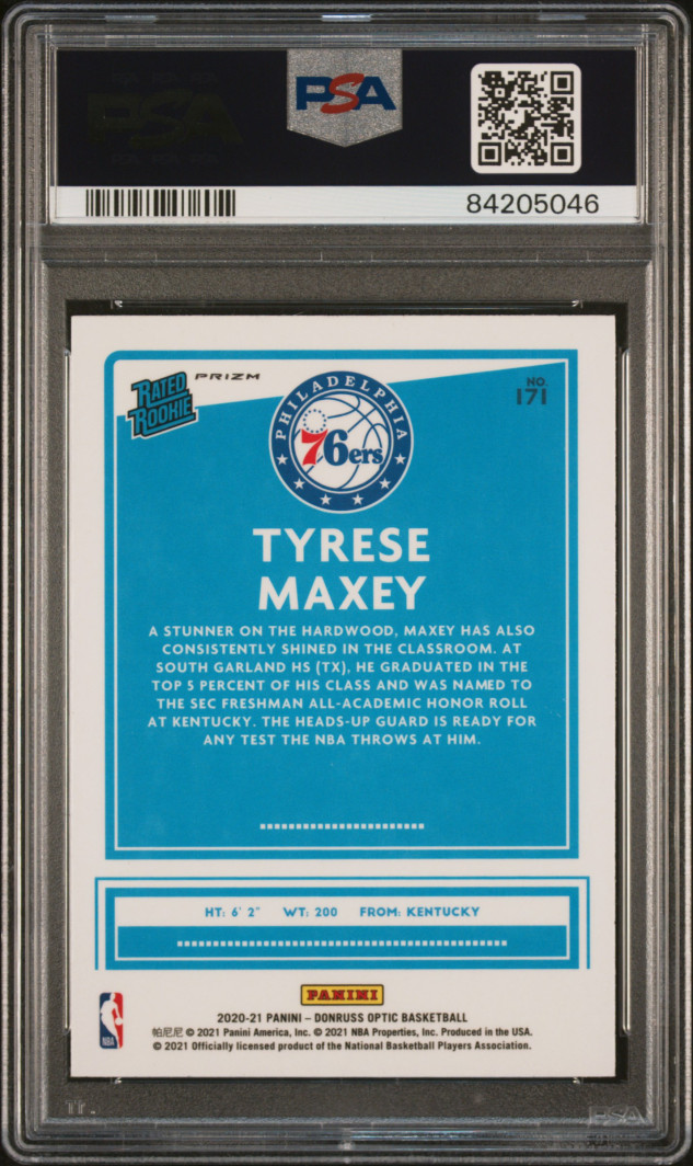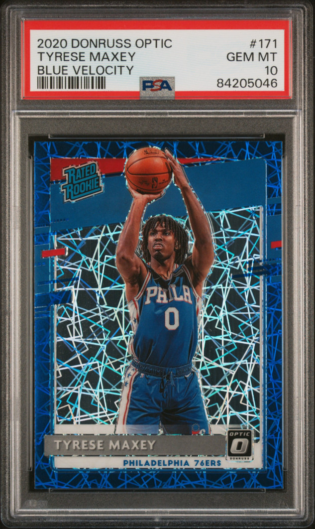 2020 Donruss Optic Tyrese Maxey Blue Velocity RC PSA 10