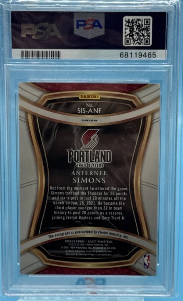 2020 Panini Select Signature Selections Anfernee Simons Signature Selections