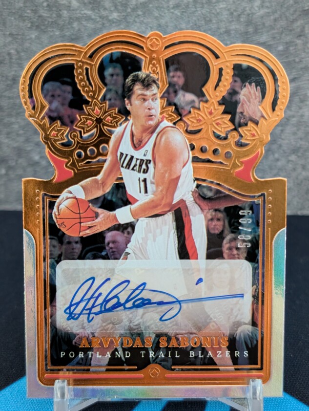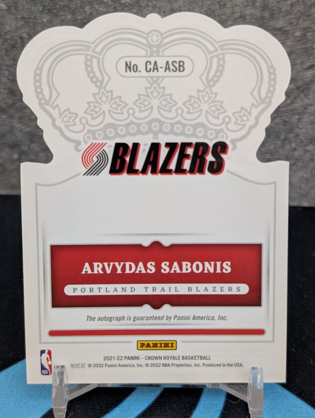 This is a 2021-22 Crown Royale Die-Cut Arvydas Sabonis Auto /99. The exact card is pictured.
