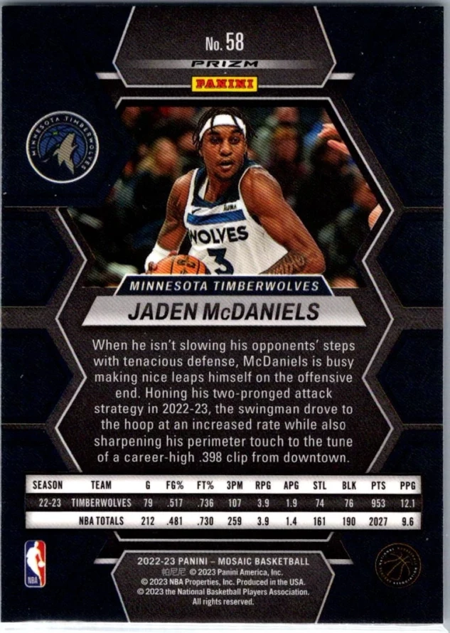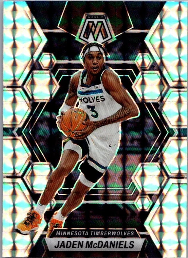 This is a nice example of a 2022-23 Panini Mosaic #58 Jaden McDaniels Mosaic