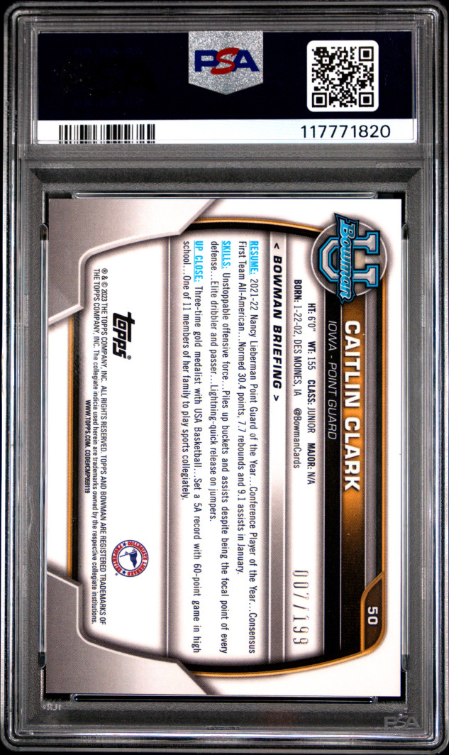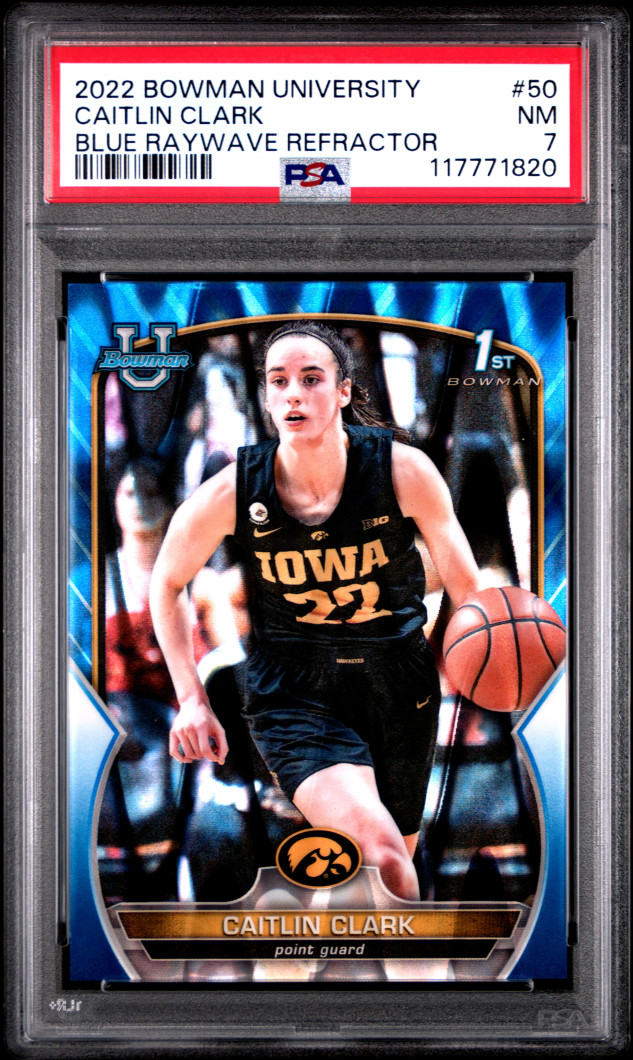 2022 Bowman Chrome University Caitlin Clark Blue Raywave Refractor