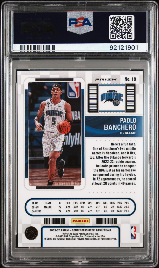 2022 Contenders Optic PAOLO BANCHERO Rookie SILVER HOLO PRIZM #18 - PSA 10 POP 8