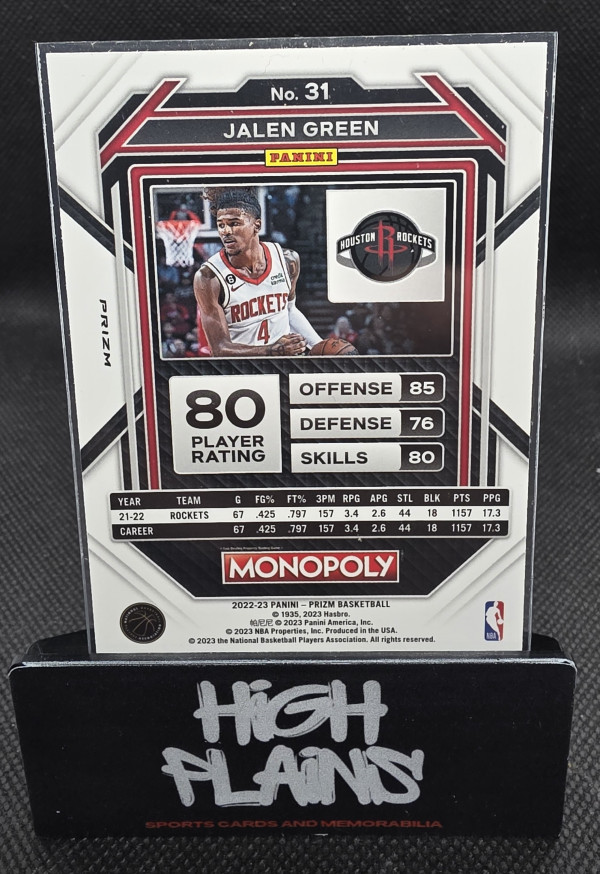 2022 Monopoly Prizm Jalen Green Dice Prizm