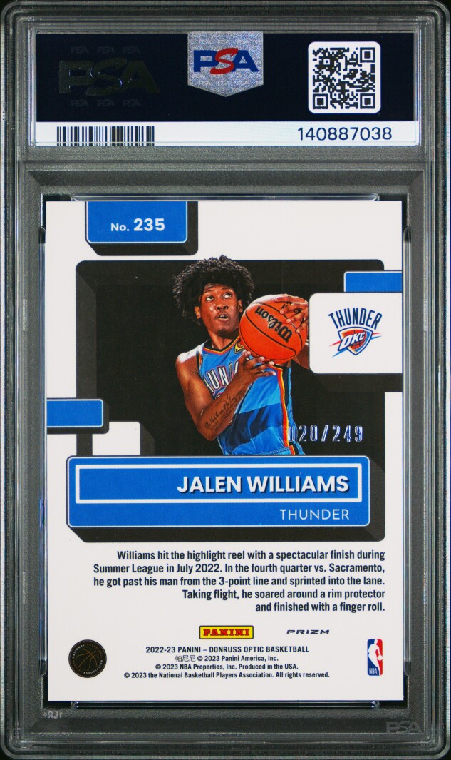 2022 Panini Donruss Optic Jalen Williams #235 Premium Box Set /249 PSA 10