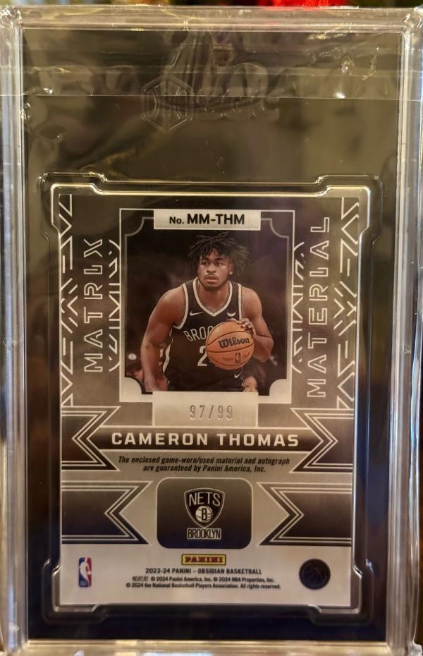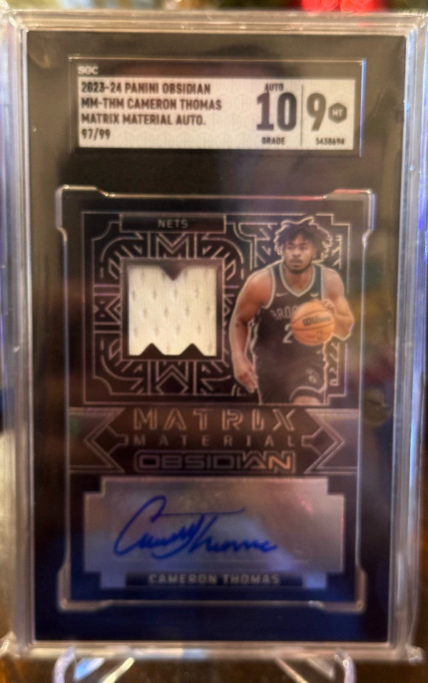 True RPA of Cameron Thomas from 2023-2024 season. Card is numbered to 99 and received a SGC 10 with an auto great of 9.5
