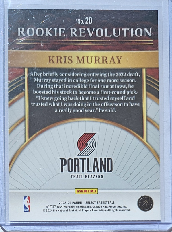 2023-24 Select Rookie Revolution Kris Murray #20.