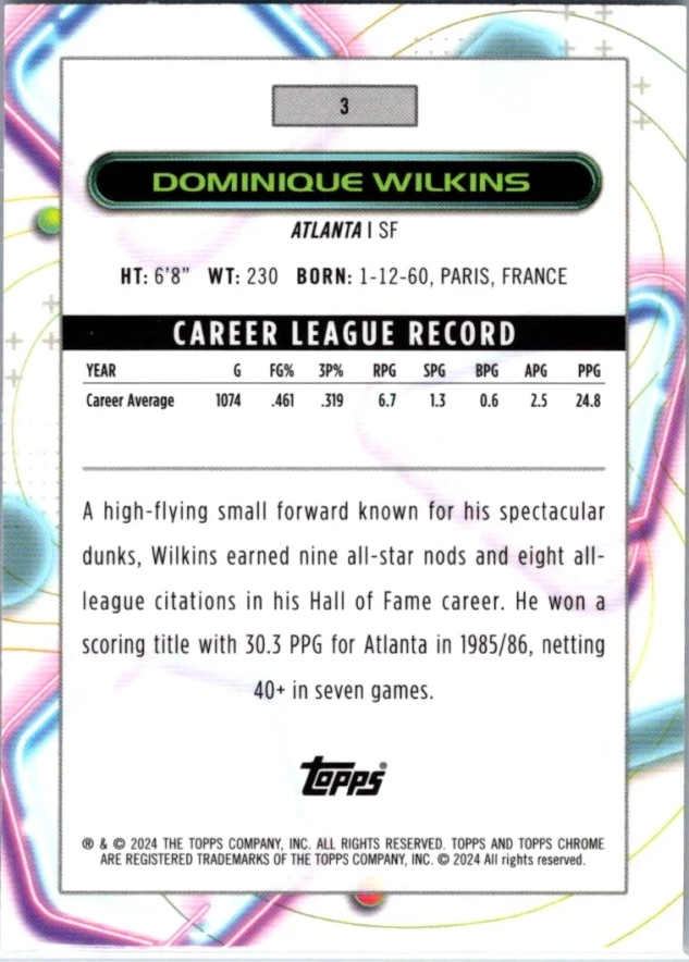 This is a nice example of a 2023-24 Topps Chrome Cosmic #3 Dominique Wilkins