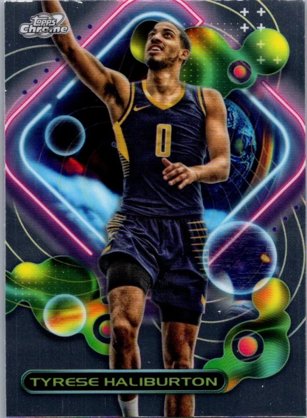 This is a nice example of a 2023-24 Topps Chrome Cosmic #50 Tyrese Haliburton