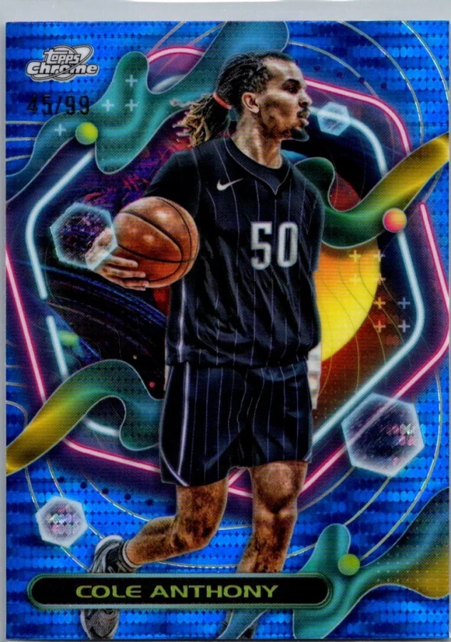 This is a nice example of a 2023-24 Topps Chrome Cosmic #93 Cole Anthony Blue Moon Refractors