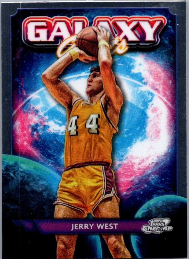 This is a nice example of a 2023-24 Topps Chrome Cosmic #GG-26 Jerry West Galaxy Greats