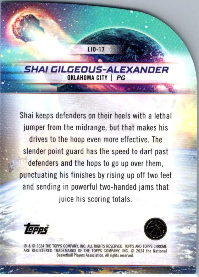 This is a nice example of a 2023-24 Topps Chrome Cosmic #LIO-17 Shai Gilgeous-Alexander Launched Into Orbit