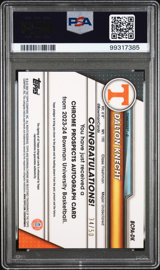 You are purchasing a 2023 Bowman University Chrome Bowman Chrome Prospects Autographs Dalton Knecht #DK PSA 10. You will receive the exact item in the photographs. Thank you for looking.