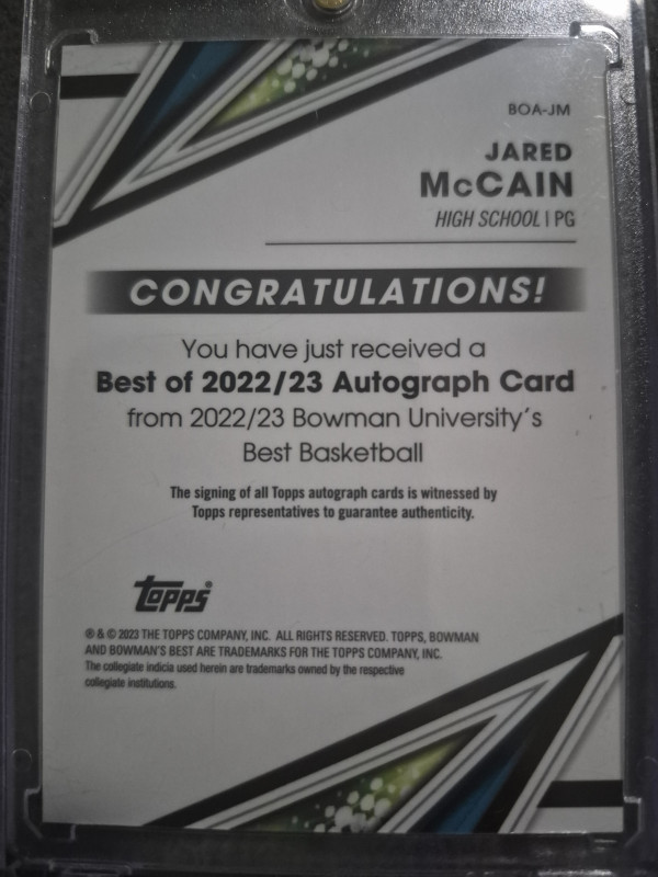 2023 Bowman University Jared McCain Rookie Auto!!