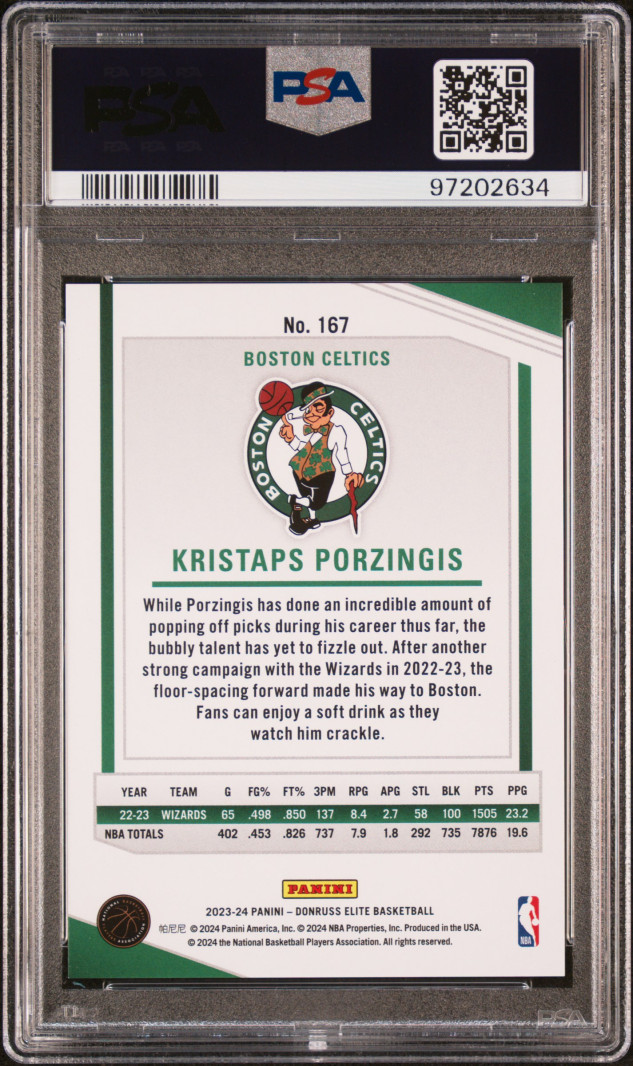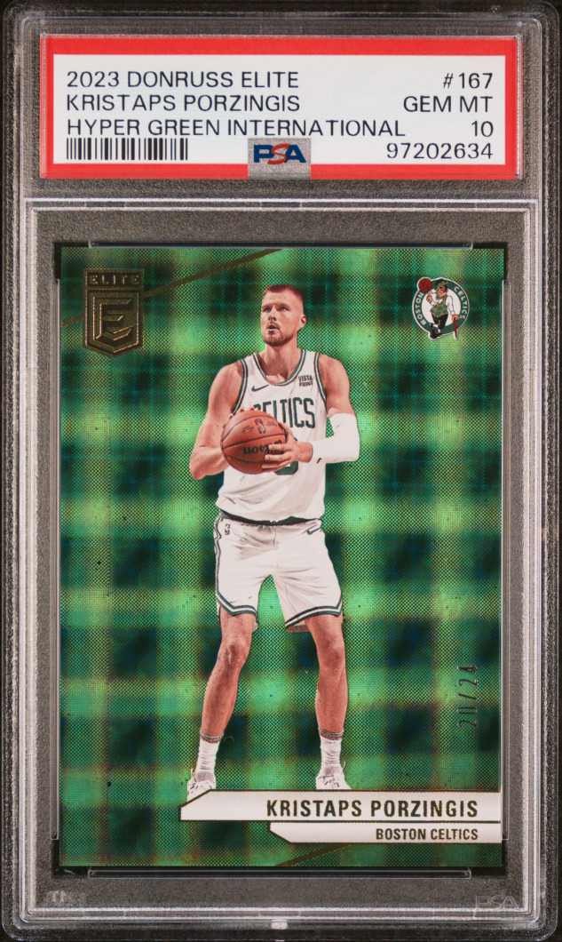 2023 Panini Donruss Elite Kristaps Porzingis Hyper Green International /24 PSA 10