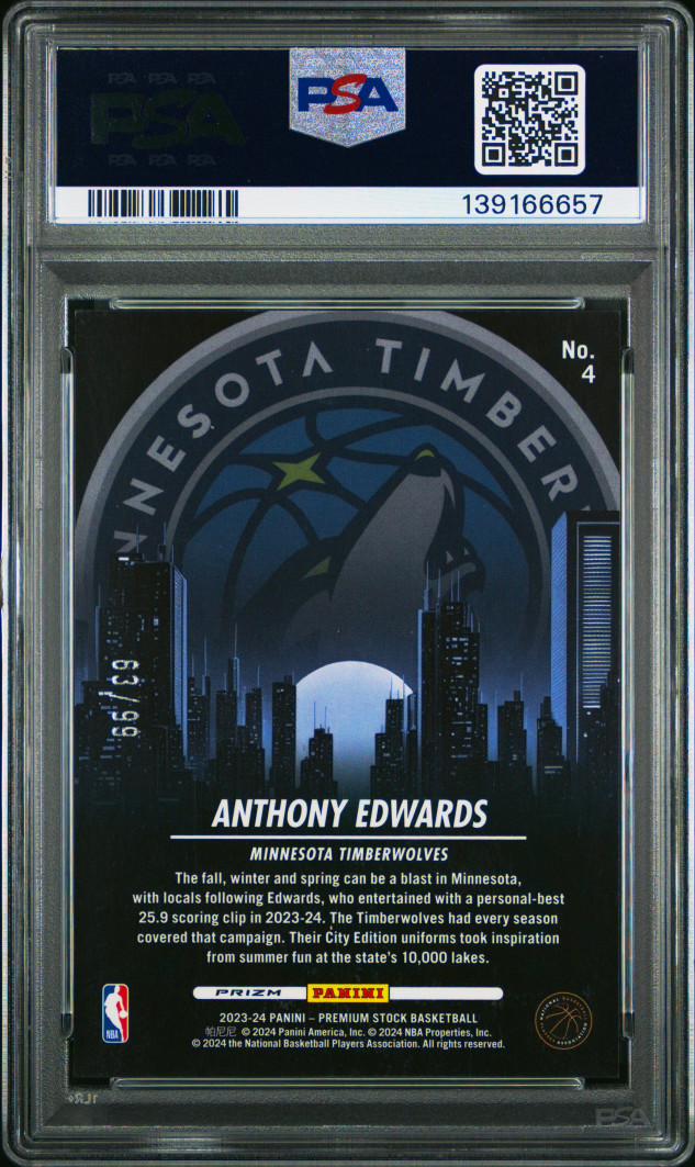 2023 Panini Hoops Premium Stock City Edition Anthony Edwards City Edition-Blue Seismic Prz