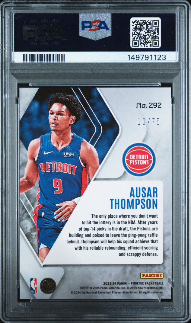 You are purchasing a 2023 Panini Phoenix Ausar Thompson #292 Lava PSA 10. You will receive the exact item in the photographs. Thank you for looking.