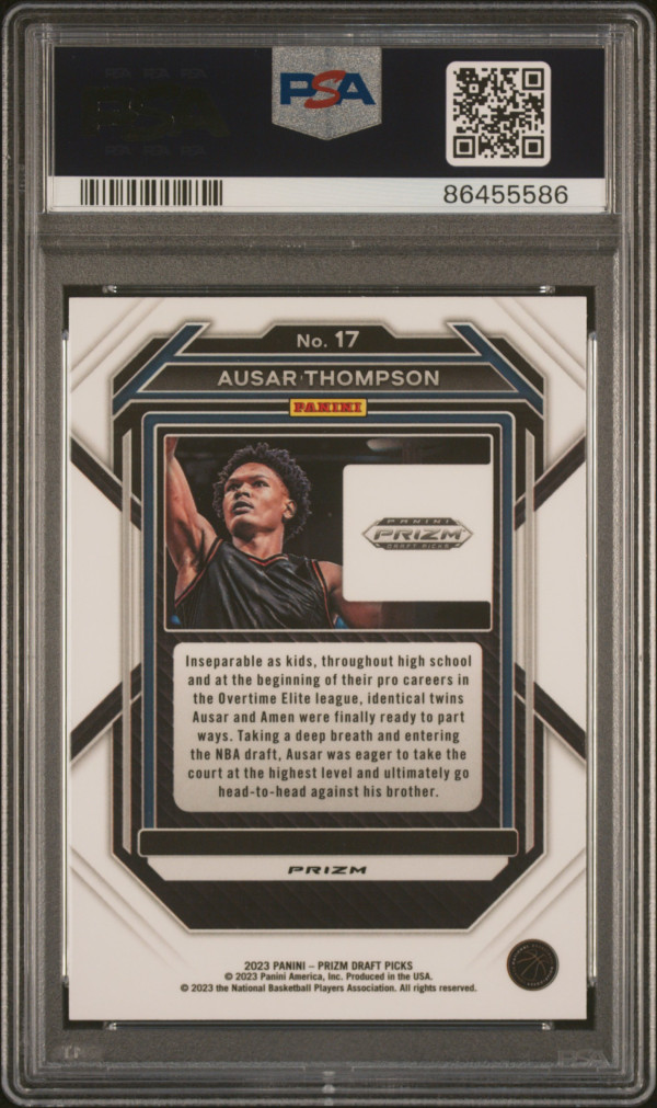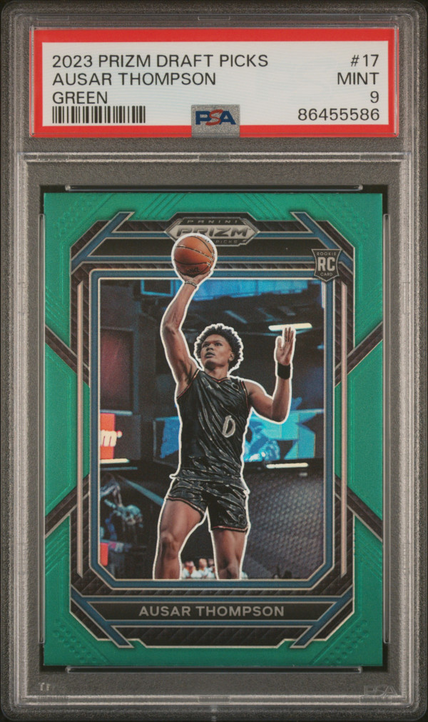 You are purchasing a 2023 Panini Prizm Draft Picks Ausar Thompson #17 PSA 9. You will receive the exact card in the photographs. Thank you for looking. Listed with Mascot.