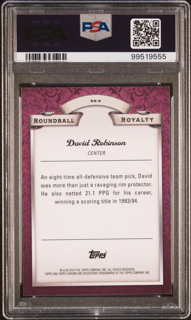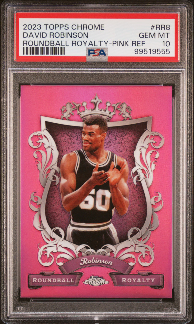 The admiral himself. What a beautiful card. 2023 chrome David Robinson round ball royalty pink ref psa 10! Pop 1