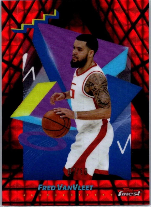 This is a nice example of a 2024-25 Finest #129 Fred VanVleet Red/Black Geometric Refractor