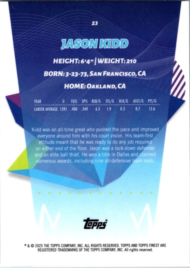 This is a nice example of a 2024-25 Finest #23 Jason Kidd