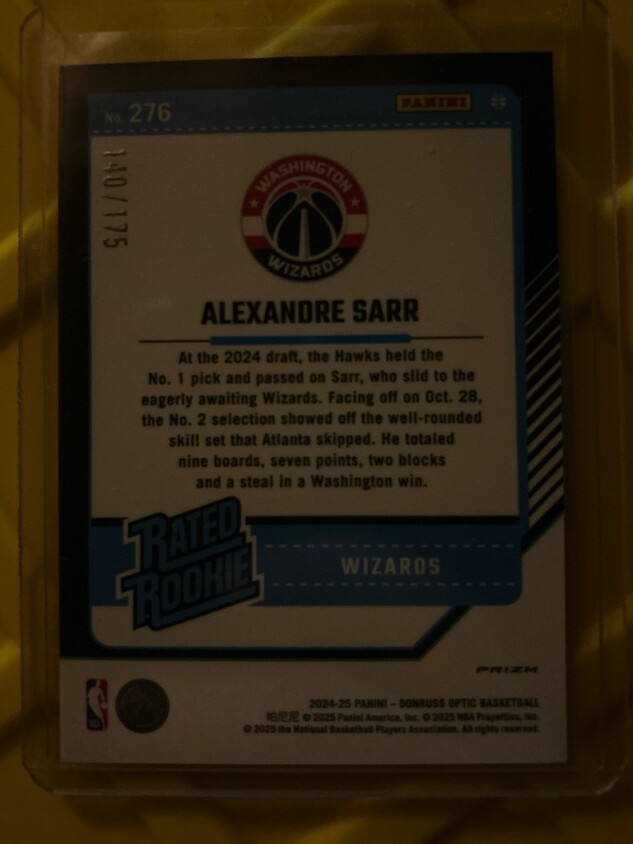 2024-25 Panini Donruss Optic Alexandre Sarr Orange Prizm RC /175 - Wizards