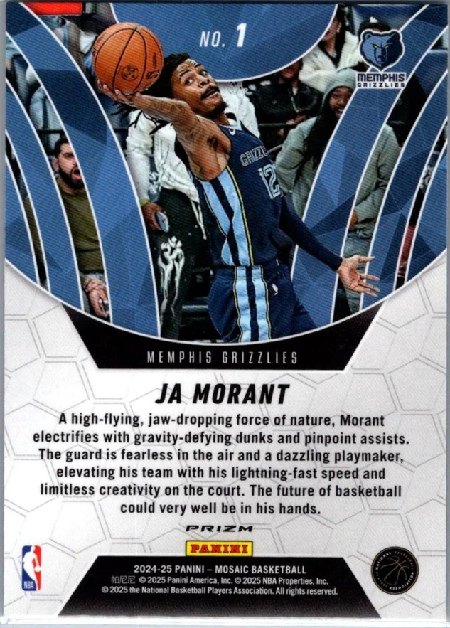 This is a nice example of a 2024-25 Panini Mosaic #1 Ja Morant Elevate Mosaic Green