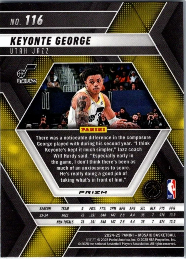 This is a nice example of a 2024-25 Panini Mosaic #116 Keyonte George Reactive Blue Mosaic