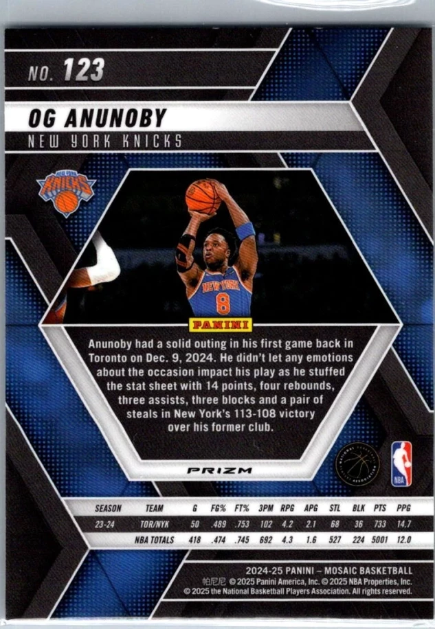 This is a nice example of a 2024-25 Panini Mosaic #123 OG Anunoby Mosaic