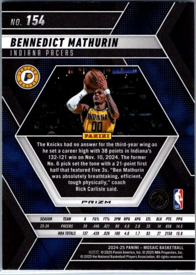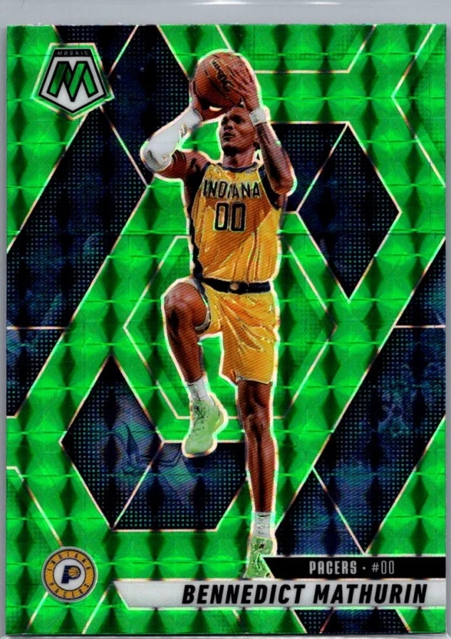 This is a nice example of a 2024-25 Panini Mosaic #154 Bennedict Mathurin Green Mosaic