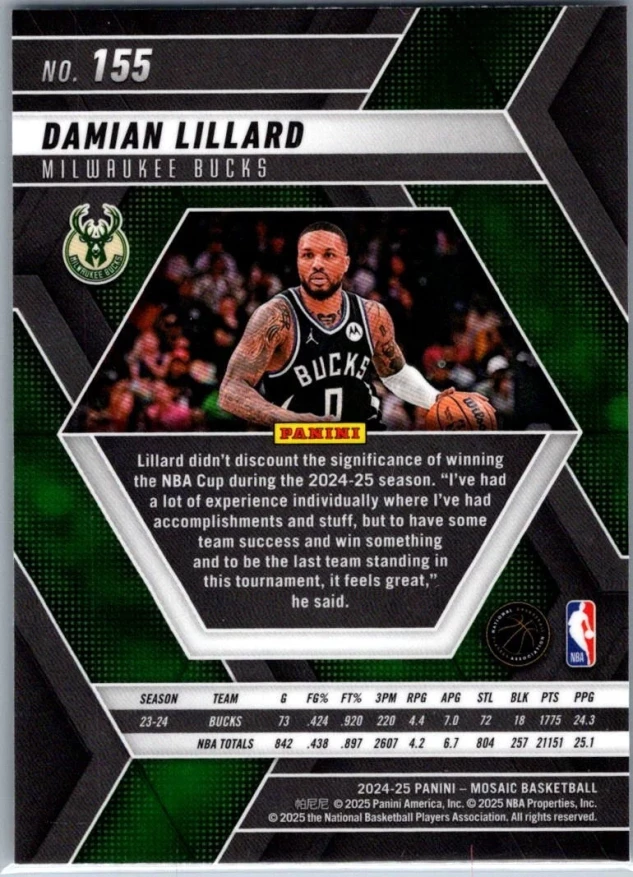 This is a nice example of a 2024-25 Panini Mosaic #155 Damian Lillard